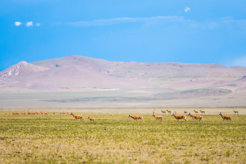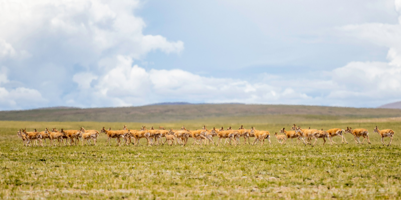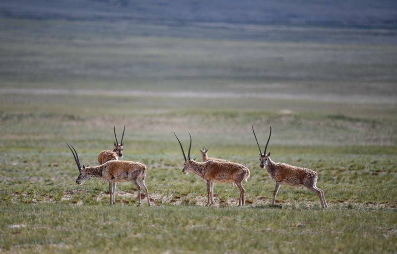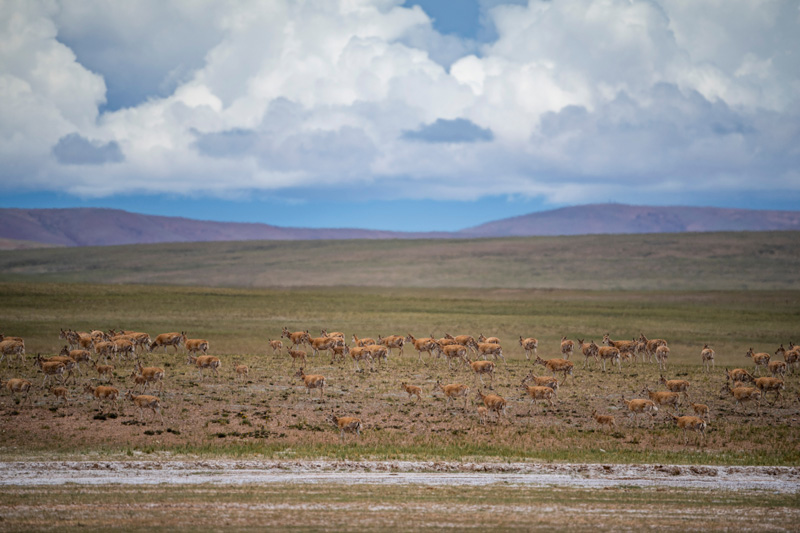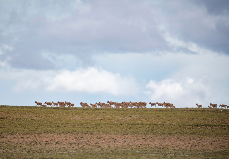 近年来,随着生态环境保护力度加强,西藏境内一些高原特有珍稀野生动物种群数量得到明显恢复,藏羚羊由5万只增加到约30万只,保护级别已经从濒危物种降为近危物种。