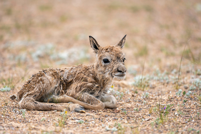 这是一只刚出生的藏羚羊幼崽(7月11日摄)。