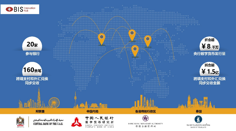 8月15日至9月23日期间,国际清算银行(香港)创新中心、香港金融管理局、泰国中央银行、阿联酋中央银行和人民银行数字货币研究所联合宣布,在多边央行数字货币桥(m-CBDC Bridge)(以下简称“货币桥”)平台上首次成功完成了基于四个国家或地区央行数字货币的真实交易试点测试,来自四地的20家商业银行基于货币桥平台为其客户完成以跨境贸易为主的多场景支付结算业务。