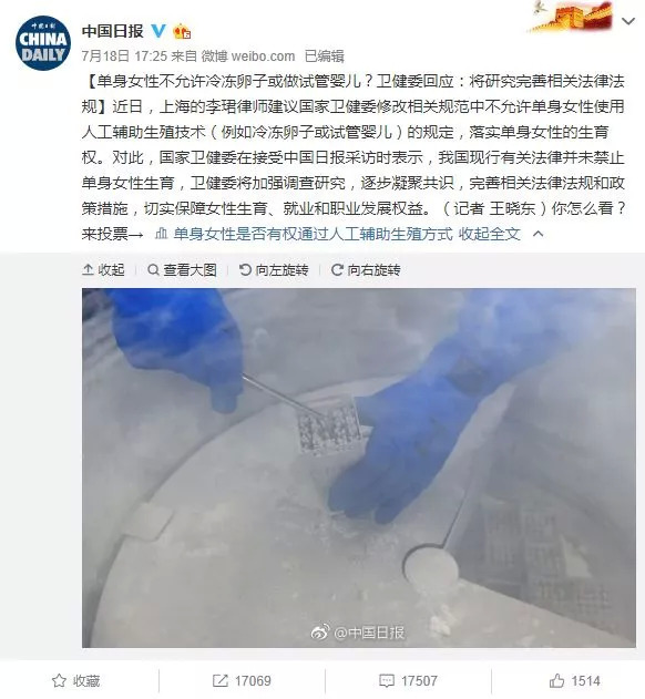 昨日,中国日报一条关于“单身女性不允许冷冻卵子或做试管婴儿?”的消息吸引了广大网友的注意。