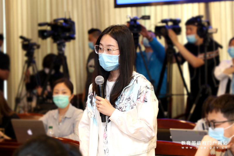 中新网记者提问。(中国教育报记者 单艺伟/摄)