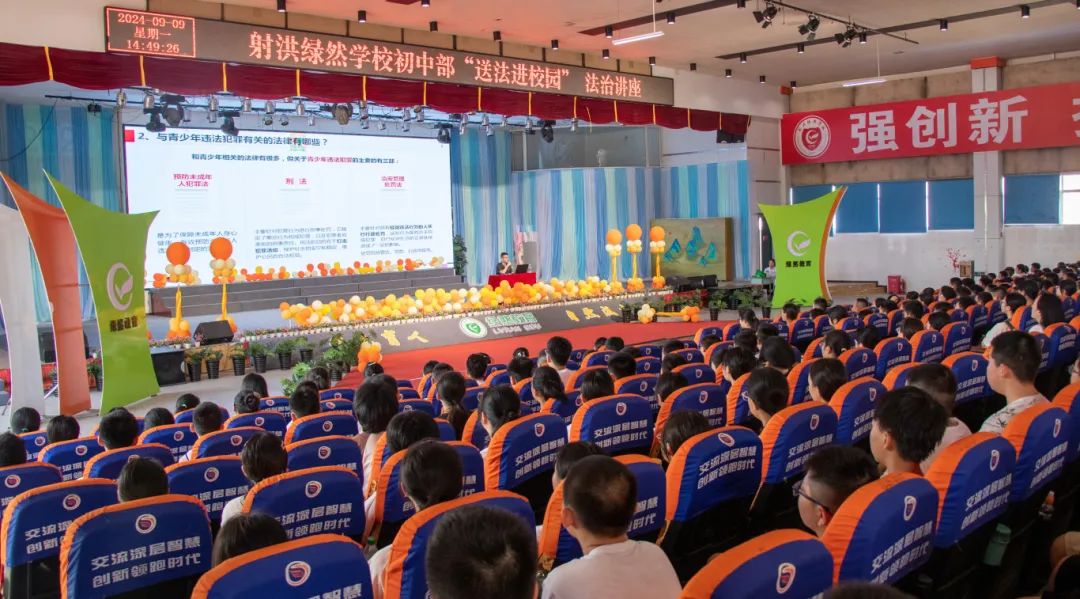 又是一年开学季,正是橙黄橘绿时。近日,射洪法院刑庭干警受邀走进射洪绿然国际学校初中部,为初一新生带来“开学第一课”,进一步增强青少年法治观念和自我保护能力,助力平安校园建设和法治校园建设。