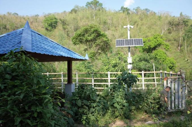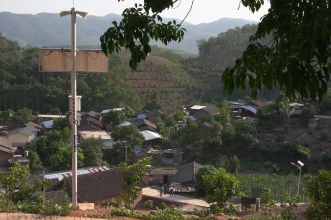 竖立在景洪市倒淌箐村村口的防象预警广播塔。徐谭 摄