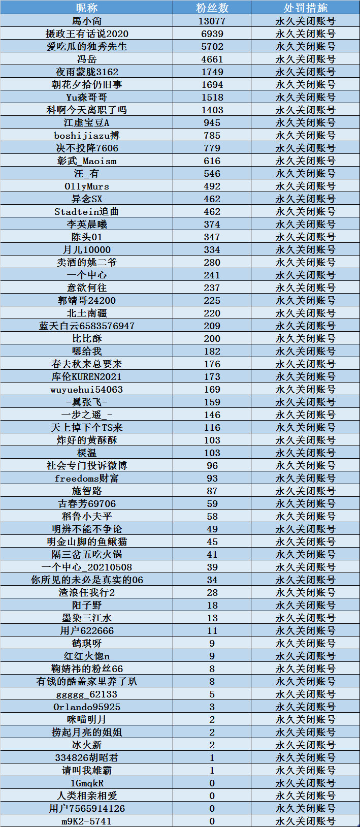 微博发布公告称,22日,对“Apicort尚未发生”“画家蒋林音 ”“IShtaRose”做出关闭账号一年的处置;23日,决定对以上三个账号予以永久关闭;24日,因发现有个别账号借此机会发布侮辱攻击袁老的有害内容,造成恶劣的影响,根据网友投诉又对发布此类信息的“?小??薄吧阏?跤谢八?020”“爱吃瓜的独秀先生”等64个账号依据有关法律法规,做出永久关闭处罚。
