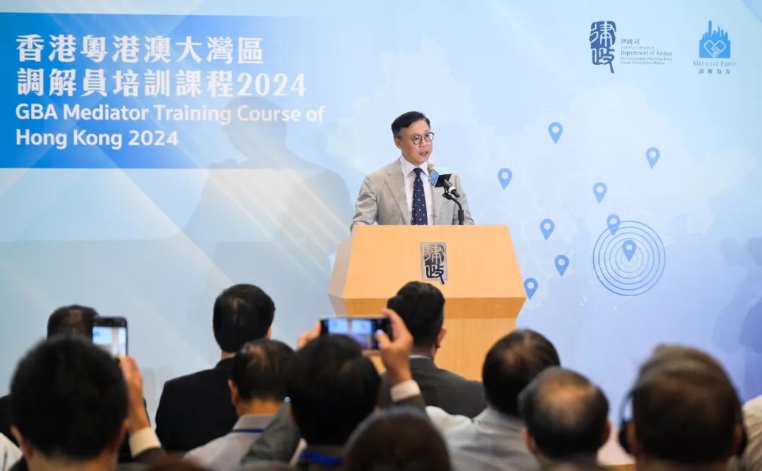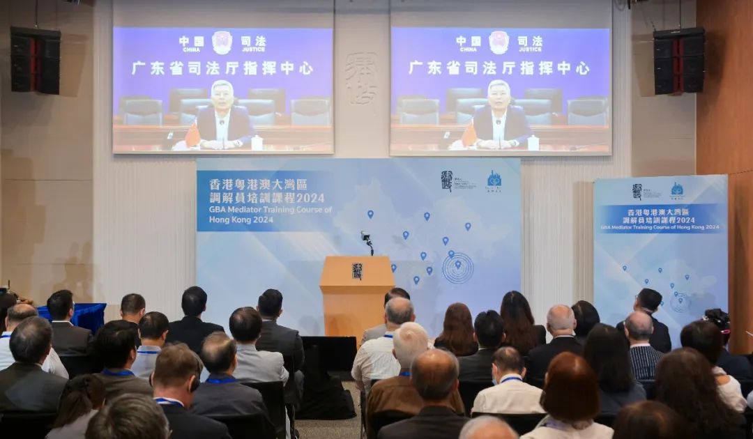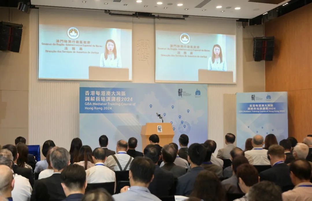 2024年8月16日,为推进粤港澳大湾区非诉讼争议解决服务衔接,香港律政司举办首次香港粤港澳大湾区调解员培训课程,吸引约400人参加。广东省司法厅副厅长林楚明、澳门法务局局长梁颖妍先后在线上作开幕致辞,香港律政司副司长张国钧在香港培训现场为课程开班发表了热情洋溢的讲话。