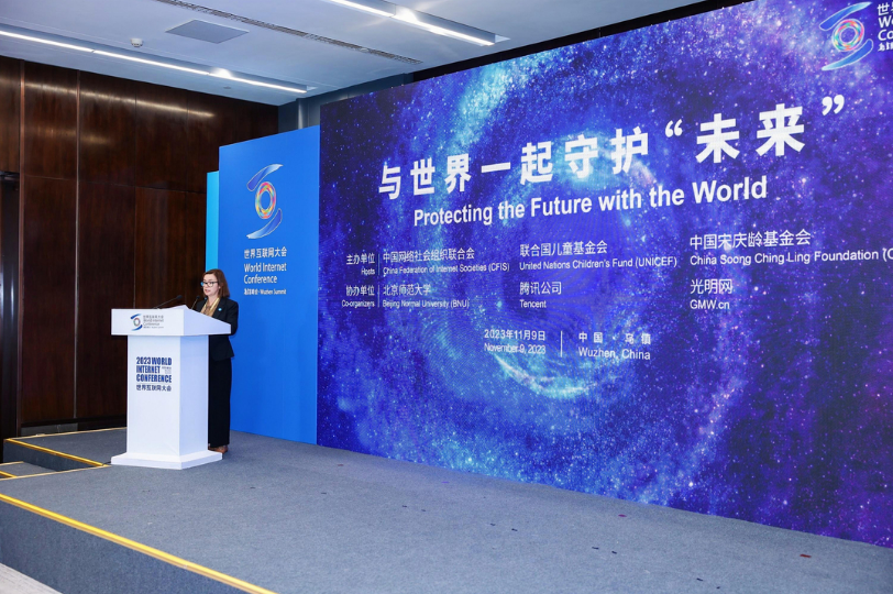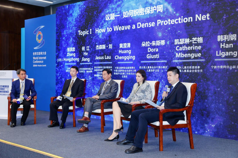 11月9日,2023年世界互联网大会乌镇峰会未成年人网络保护论坛在浙江乌镇举行,与会嘉宾围绕“与世界一起守护‘未来’”主题,为护航新时代青少年健康成长建言献策。论坛上发布了未成年人网络保护主题曲《永远为你》、未成年人网络素养提升系列短片,并分别以“如何织密保护网”“如何提升青少年网络素养”为议题举办了两场圆桌论坛。