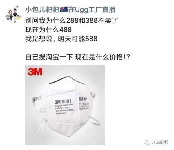 微信昵称“小包儿粑粑在Ugg工厂直播”的当事人王某某,先是在朋友圈散布涨价信息哄抬口罩价格,此后又玩起“失联”的戏码,直至江苏南通市崇川区市场监管局发布征集线索公告后才迫于压力前来接受调查。