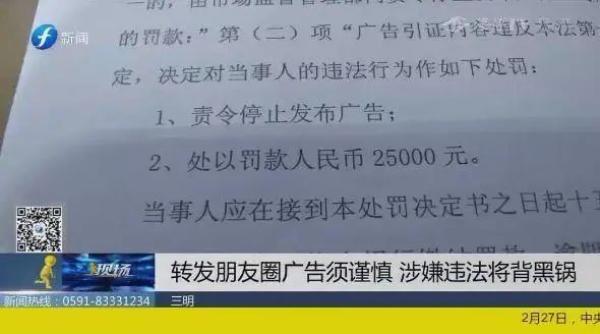 福建三明的小王因为在朋友圈转发一条关于某些产品可以抑制新型冠状病毒的广告信息,面临罚款25000元的行政处罚。