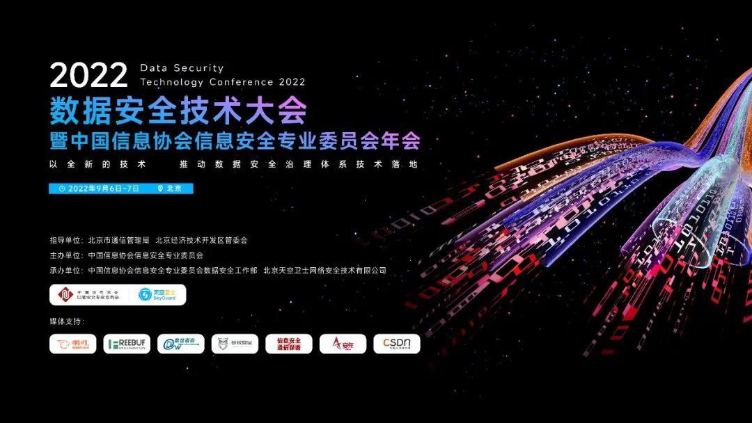 9月6日,2022数据安全技术大会暨中国信息协会信息安全专业委员会年会在北京正式开幕。在北京市通信管理局和北京经济技术开发区管委会的指导下,由中国信息协会信息安全专业委员会主办,中国信息协会信息安全专业委员会数据安全技术工作部和天空卫士联合承办,逾3000家企业线上参与,多嘉宾莅临、多用户参与、多厂商联合参与的首届数据安全技术大会以“线上+线下”的方式奏响数据安全最强音。