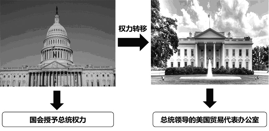 美国贸易的主管权传统上归属美国国会,国会会在特定时间授予总统权力处理与其他国家的贸易争端。20世纪70年代,为了应对欧洲、日本经济高速增长导致的贸易逆差,颇具贸易保护主义的美国《1974年贸易法》出台,该法律要求在白宫设立总统下属的贸易代表办公室,直接负责美国的国际贸易政策,处理与他国的谈判与协议,其中最著名的案例就是应用该法律的“301条款”对日本发起的贸易调查,直接导致日元升值,经济动荡。随着近年来美国对《1974年贸易法》的不断修订,美国贸易代表办公室的权力越来越大。