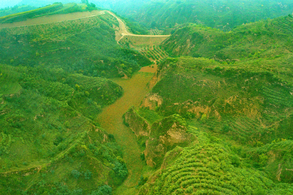 黄河流域绥德境内的淤地坝。新华社记者 刘诗平摄