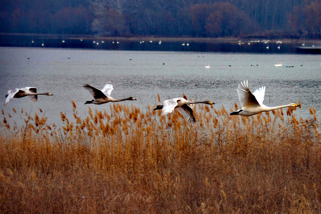 黄河三门峡境内的天鹅。新华社记者 刘诗平摄