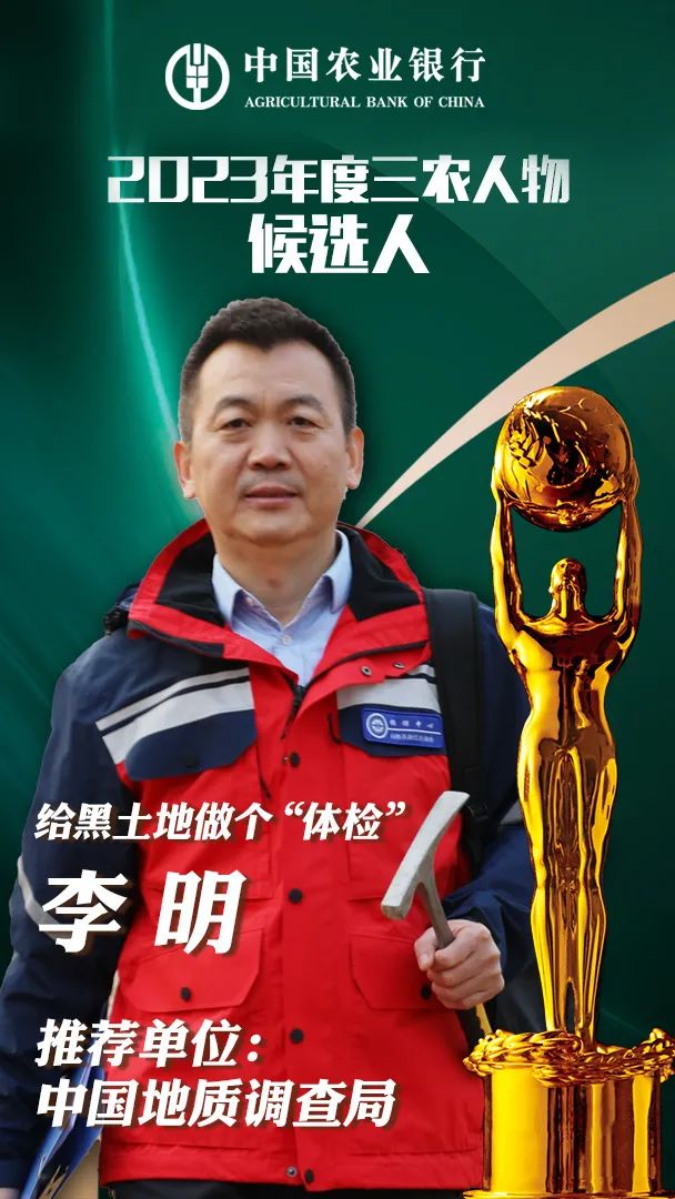 李明,1975年生,现任中国地质调查局自然资源综合调查指挥中心自然资源调查监测处处长、自然资源综合调查一级项目负责人、黑土地地表基质调查工程带头人。近年来,他先后负责全国森林资源调查、全国草原资源调查等工作。2021年,自然资源部首次提出地表基质调查,李明作为项目执行人锁定黑土地,三年时间,从试点探索到组织完成黑土保护83个县域调查,创建立体档案,切实为黑土耕地保护和粮食安全提供了重要基础支撑。