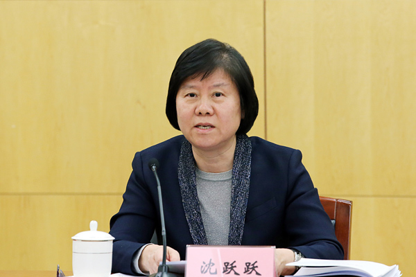 1月28日,全国人大环境与资源保护工作交流会在京召开。全国人大常委会副委员长沈跃跃讲话。摄影/许麟