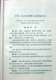 然而人的认识与意愿参差不齐。生物多样性即生物资源的价值,具有公共所有性和社会资本性,个人或集团受自身眼前利益的诱惑则会倾向对野生资源作掠夺性占有。这就需要开展社会性的制约,包括法律和政策的调控。我国《宪法》(1982)规定:“国家保障自然资源的合理利用,保护珍贵的动物和植物。禁止任何组织或者个人用任何手段侵占或者破坏自然资源。”这就以国家根本法的庄严,给包括动物物种在内的自然资源保护和合理利用作了最高保证。至今,我国已公布的,涉及动植物保护的法律、法令和法规性文件等有40多个,主要国家法律有《环境保护法》(1970)、《海洋环境保护法》(1982)、《森林法》(1984)、《草原法》(1985)、《渔业法》(1986)、《水土保持法》(1991)和《野生动物保护法》。