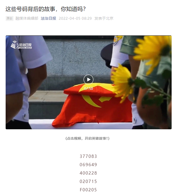 清明节点缅怀政法英烈稿件《这些号码背后的故事,你知道吗?》用警号串起一段段英雄故事,以小切口展现真情怀(点击图片查看)