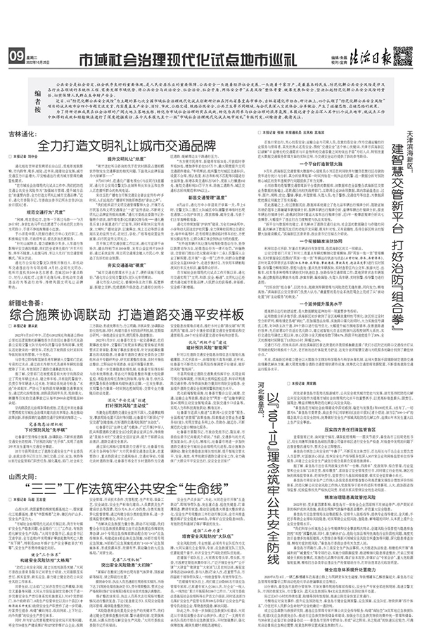 在一版推出5篇全国市域社会治理现代化试点创新研讨班侧记报道,推出16块“市域社会治理现代化试点地市巡礼”专版,刊发报社相关地方记者站深入80个试点地市实地采写的80篇稿件,形成强大报道声势