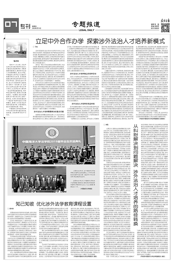 推出整版专题报道,关注涉外法治人才培养(点击图片查看)