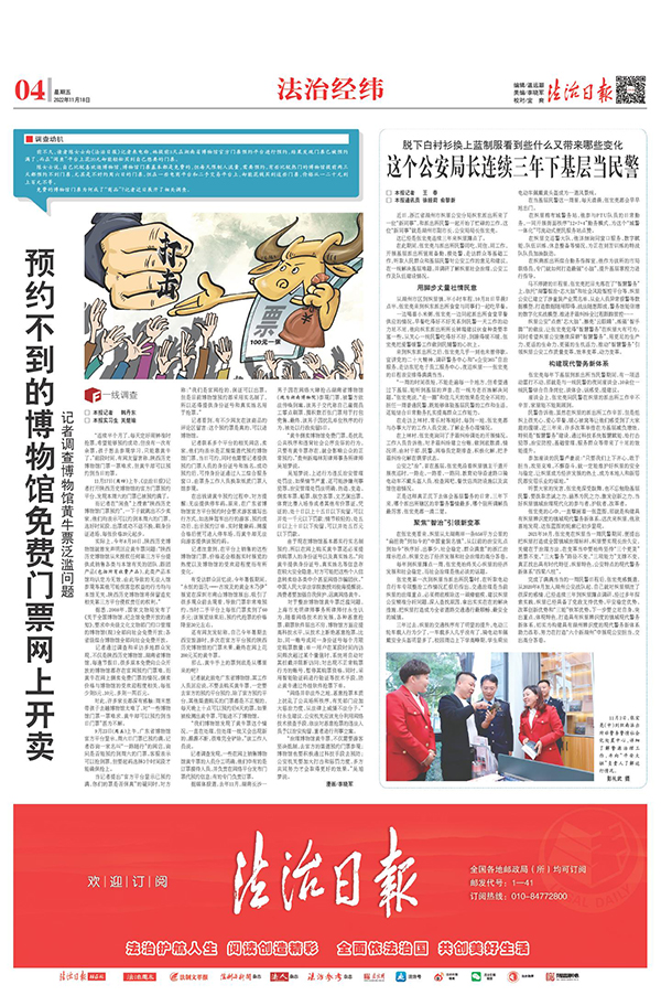 开设“双百政法英模巡礼”“警徽闪耀·礼赞公安英模”“司法行政英模礼赞”等专栏、专题,以两个整版的篇幅介绍38位2022“最美基层民警”,加强中国人民警察节、清明节等重要时间节点选题策划,大力宣传无私奉献、英勇无畏、不怕牺牲的英雄模范和先进集体事迹,引导社会各界自觉践行社会主义核心价值观。