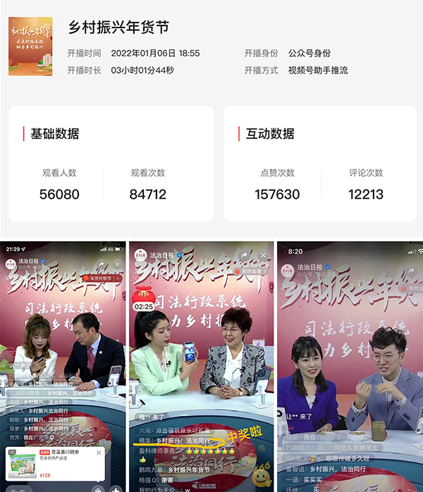 “乡村振兴年货节——司法行政系统助力乡村振兴直播活动”相关数据及现场图片