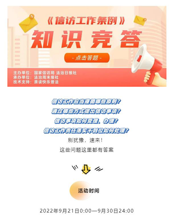 “《信访工作条例》知识竞答活动”参与竞答人数达到207.6万人,累计答题次数835万次(点击图片查看)
