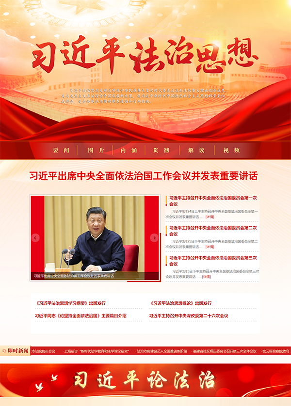 法治网对“习近平法治思想”专题频道进行改版升级,增设“头条新闻”“习近平论法治”专栏,优化调整页面设计、整体布局,2022年发稿1200余篇(点击图片查看)