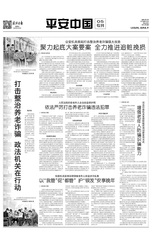 聚焦全国打击整治养老诈骗专项行动,以一个整版的篇幅展现各地各有关部门维护老年人合法权益的新进展、新成效(点击图片查看)