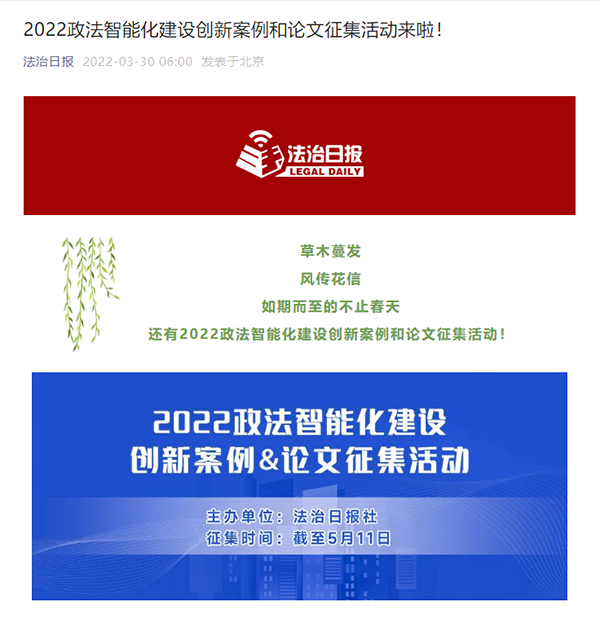 2022年3月,“2022政法智能化创新案例和论文征集宣传活动”拉开序幕(点击图片查看)