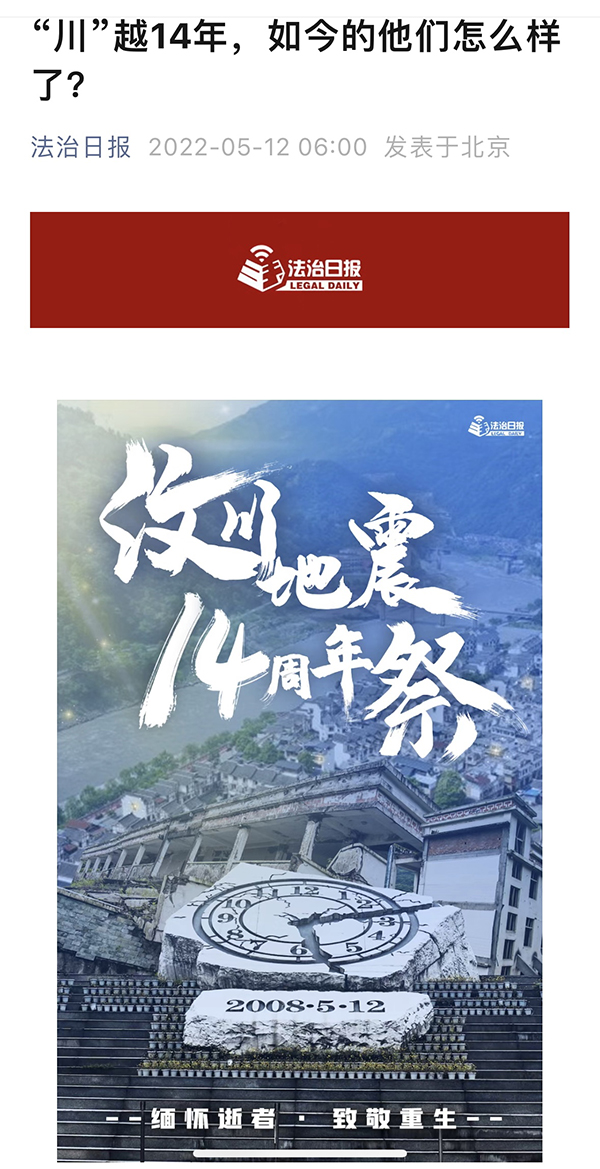 汶川地震14周年,推出融媒体作品《“川”越14年,如今的他们怎么样了?》,见证汶川重生,传递抚慰人心的正能量(点击图片查看)