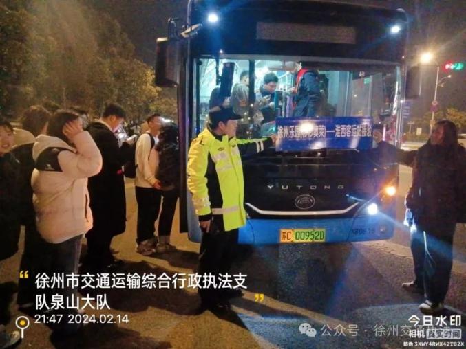 成立“徐州铁路旅客接驳运输保障工作专班”,徐州火车站每日将到站客流、加班临客等信息定时推送,交通部门指导各运输企业提前做好延时服务、增投运力、加密班次等应对运输保障措施。支队春运期间实行7×24小时值班值守制度,建立健全定期调度、督办转办、一事一协调等工作机制,现场值守至高铁运营最后一班,对接出租、公交、轨道运营车辆,引导群众便捷出行。