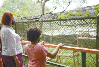8月9日,游客在乌干达恩德培的乌干达野生动物教育中心参观。新华社发