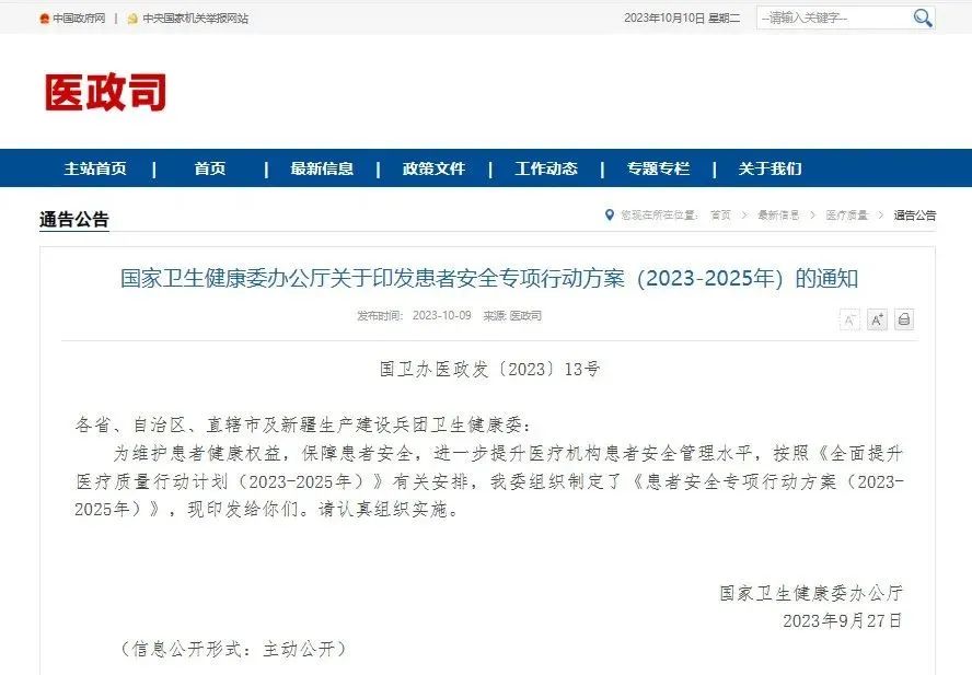 早在今年10月,国家卫生健康委制定并发布了《患者安全专项行动方案(2023-2025年)》。方案中提到,防止数据泄露、毁损、丢失,严禁任何人擅自向他人或其他机构提供患者诊疗信息。