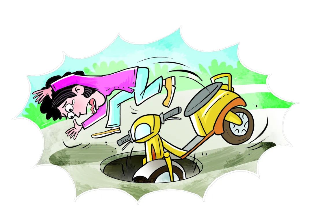 骑电动车压上下陷的城市窨井盖导致侧翻,谁来担责?