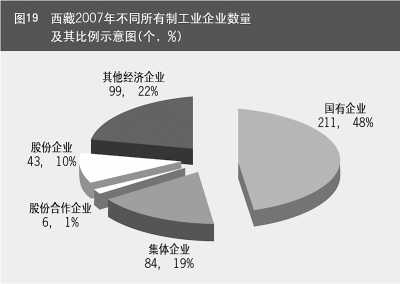 已建立起多元化的市场。除各地纷纷兴建的商品市场外,在拉萨市等大中城镇还出现了专业化的生产资料市场、人力资源市场和证券市场。市场在资源配置中开始发挥基础作用。企业已开始成为具有自主经营权的市场主体。从1959年西藏实行民主改革到1984年西藏改革开放的25年时间里,西藏的工业发展由国有和集体企业一统天下,1985年西藏才出现第一家其他成分的工业企业。而到2007年,非国有和非集体成分的工业企业已发展到148家,其产值已占工业总产值的近60%,在西藏的工业企业中占举足轻重的地位,这类企业的经营完全由市场调控。即便是公有制企业的生产和经营也不像过去完全受政府指令计划的调配,也在遵循市场法则并接受市场调配(注27)。