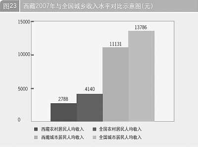 2007年,西藏城市化水平仅为38.3%,这意味着西藏61.7%的人口是居住在广大农牧区的藏族农牧民,所从事的产业是传统的农牧业。事实与数据表明,西藏自治区在提高城镇化水平和努力增加市镇人口收入的同时,正在千方百计地加大对农牧民的扶持力度,并希望通过发展与扶持,使得广大农牧民能够充分享受改革开放和经济发展的成果。