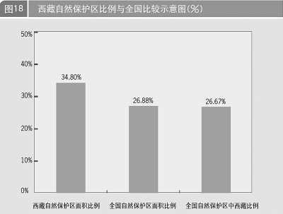 在保护区建设方面,截至2008年底,全区共有自然保护区20个,其中,自治区级自然保护区11个,国家级自然保护区9个,达4126.3万公顷,占全区国土面积的34.8%,西藏已建立各类生态功能保护区21个(其中国家级1个)。初步形成了一个类型比较齐全、分布比较合理的自然保护区网络。