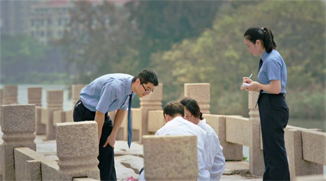 检察官在安平桥上调查桥体保护及周边水质情况