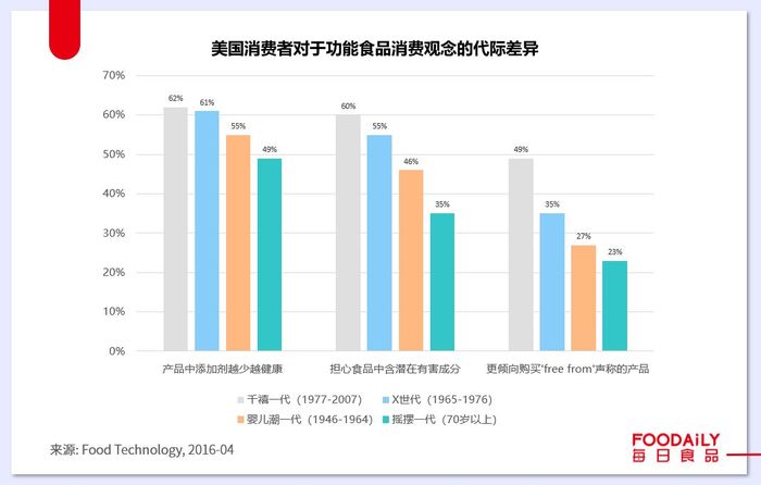 可以看出,不仅是中国在喊消费升级,美国同样面临着功能食品消费群体的代际更迭。从关注具体的生理功能,到彰显个性化的生活方式和理念,这是人类社会不断向前发展的必然结果。