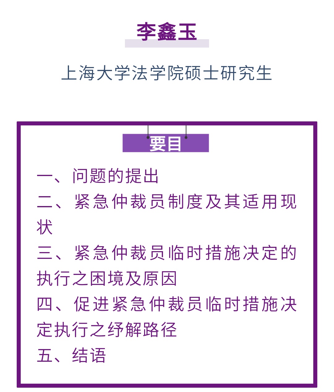 2.国内紧急仲裁员制度的适用现状我国内地自引入紧急仲裁员制度以来,截至目前一共受理了三起适用紧急仲裁员程序的案件。其中两例在香港法院获得执行,另一例由当事人自觉履行。从已经被执行的三次紧急仲裁员案例可以得知,我国仲裁机构虽然突破了临时措施法院专属模式,但是适用条件是限于双方所约定适用的法律承认紧急仲裁员可以作出临时措施的情况。而且如果是国内的仲裁案件或者选择适用中国法的情形,也不能适用紧急仲裁员制度。此外如果是在我国执行的案件,也很可能因为违反我国法律规定而无法得到执行。
