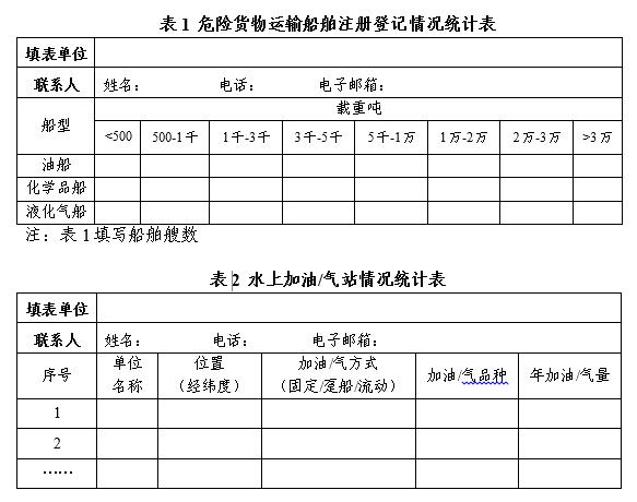 3.长江经济带相关省级交通运输主管部门汇总本行政区域所有相关表格后,以电子邮件形式报部海事局(联系人:白宇明,010-65292873,邮箱:baiyuming@msa.gov.cn)。