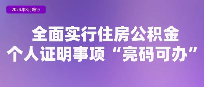《住房城乡建设部办公厅关于整合住房公积金个人证明事项推动“亮码可办”工作的通知》提出,依托全国住房公积金小程序和全国住房公积金监管服务平台,在住房公积金缴存人申请开具职工缴存证明、异地贷款缴存使用证明、贷款结清证明等个人证明时,向其提供实时在线开具、后台自动查验等服务,以统一“电子码”代替原有3项纸质证明,实现住房公积金个人证明事项“亮码可办”。2024年8月起,全面实行住房公积金个人证明事项“亮码可办”
