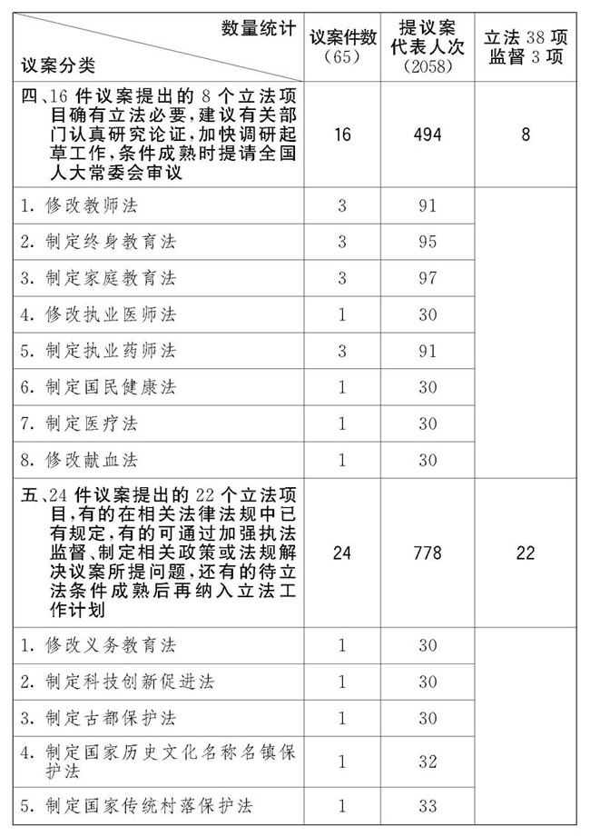 附件二:十二届全国人大四次会议议案审议结果报告有关数据统计