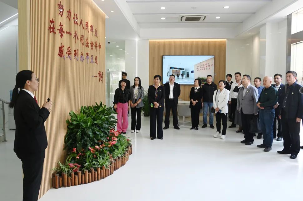 12日上午,代表委员们来到崇明区人民法院本部,现场参观了人民司法文化墙、诉讼服务中心、法治教育基地、廌去文化空间等场所。