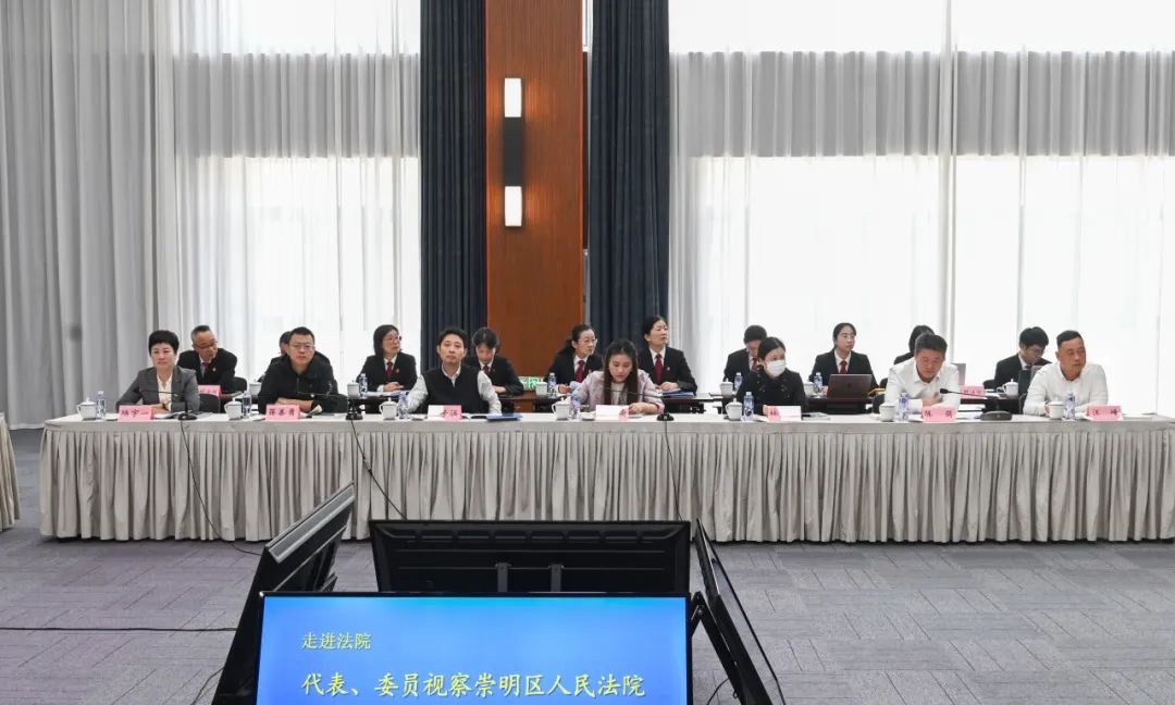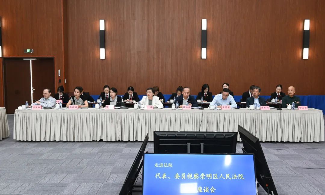 上海市高级人民法院党组副书记、副院长陆卫民,崇明区人大常委会副主任王菁,崇明区人大常委会副主任龚思聪,崇明区人民法院党组书记、院长谢闻波,以及上海市人大常委会代表工作委员会办公室四级调研员邵峰、崇明区政协社会和法制委员会主任施利华等参加此次活动。这是今年上海市高级人民法院组织人大代表、政协委员常态化调研基层法院的第四站。