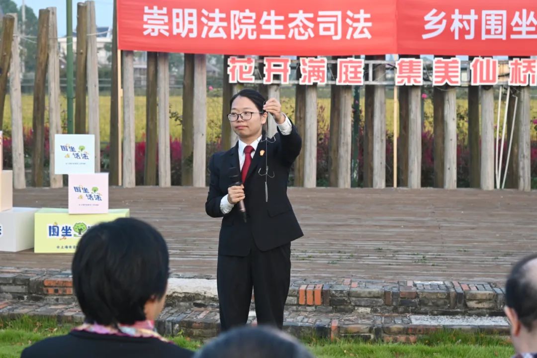 “围坐话法”是崇明区人民法院生态环境司法保护普法的“新打开方式”,以驻村(居)法官工作室为依托,茶余饭后,法院干警走进乡村,与村民们促膝而谈,“面对面”聊聊相关法律知识。