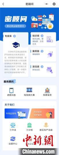 中新网天津2月21日电 (记者 王君妍)记者21日从天津经开区获悉,为强化商业秘密保护数字化建设,深化商业秘密保护服务,天津经开区开发的“密顾问”综合保护平台日前正式上线。据介绍,这是天津市首个商业秘密综合保护线上平台,将免费为企业提供专业资源和服务,进一步提升企业商业秘密保护意识和能力。