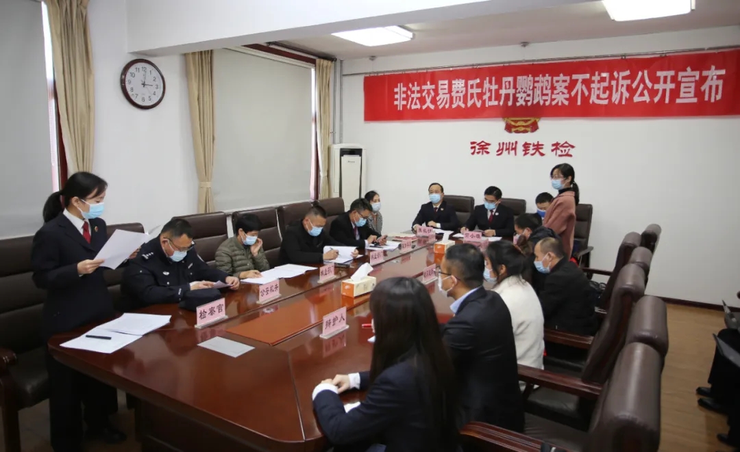 11月9日,江苏省徐州铁路运输检察院(下简称徐州铁检院)对刘某等3人非法交易费氏牡丹鹦鹉案绝对不起诉公开宣布,并对3人进行法治教育。