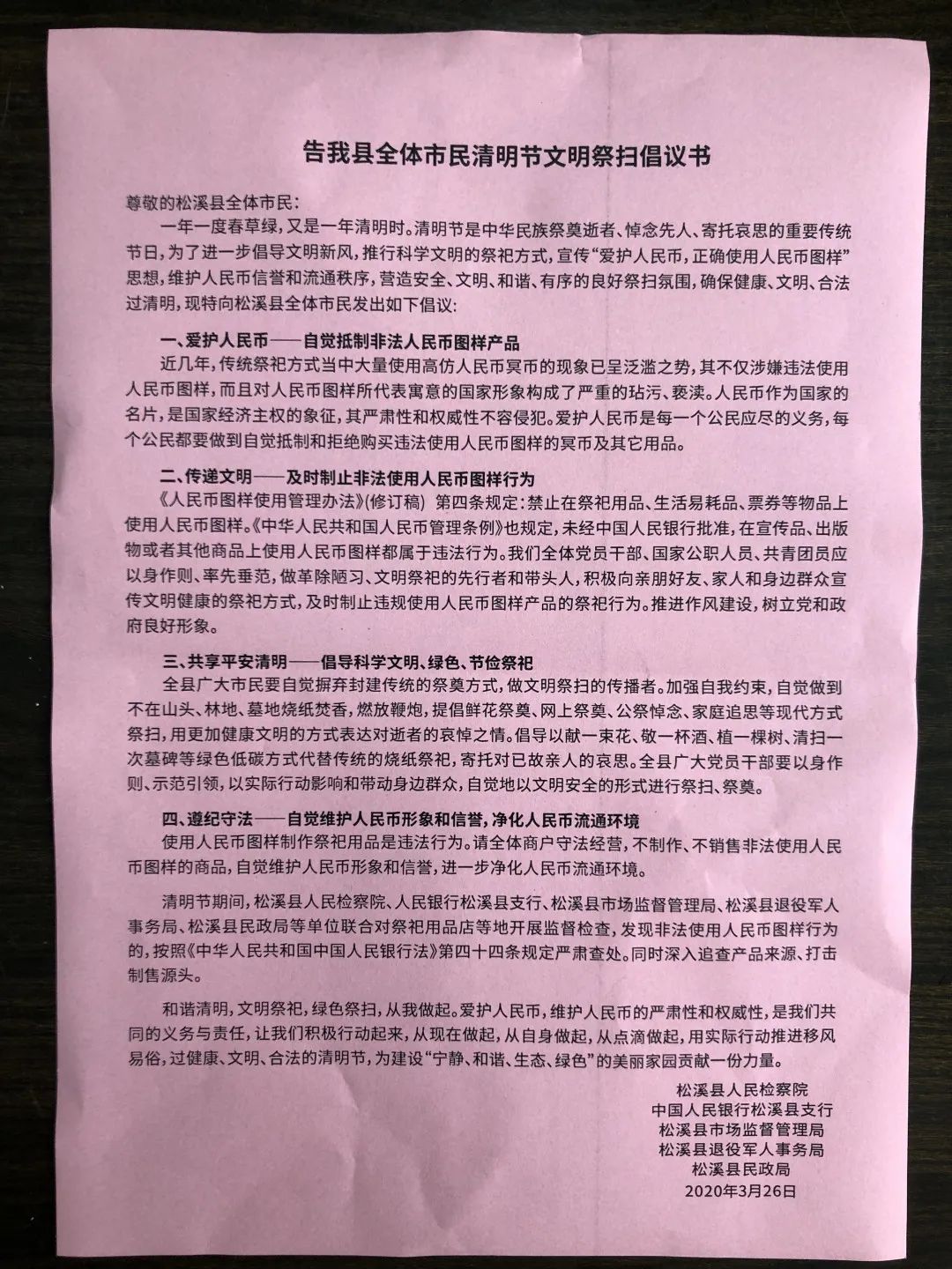 原标题:《清明普法 | 冥币滥用人民币图样?松溪检察发出检察建议》