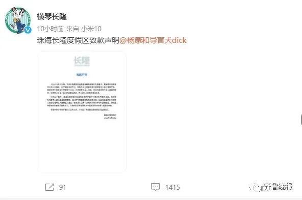 声明称,由于酒店培训不力,导致员工在导盲犬相关接待规定上存在理解不足,造成杨先生未能顺利完成旅行计划。经园方与杨先生本人沟通,杨先生已接受道歉和邀请,并计划于近期重游珠海长隆。