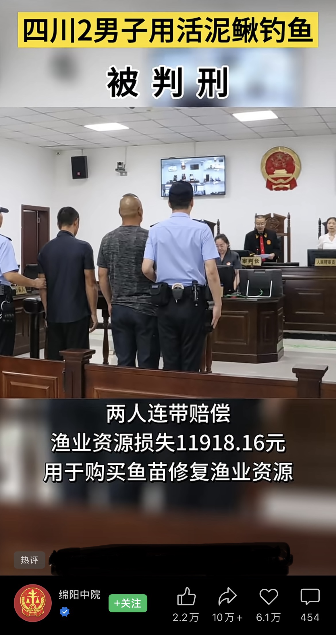 近期,四川盐亭县两名男子因禁渔期用活泥鳅钓鱼获缓刑。绵阳中院视频号发布消息后,立即引发热议。有人叫好,认为臭名昭著的“泥鳅党”罪有应得,也有很多人表示不理解:这也违法?毕竟只是钓鱼。